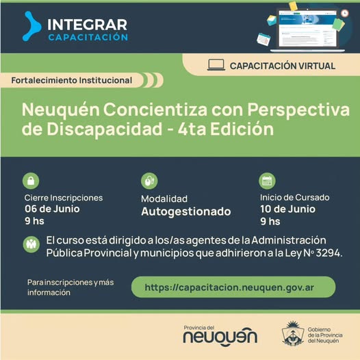 Las personas interesadas pueden inscribirse y obtener más información en el siguiente enlace: capacitacion.neuquen.gov.ar