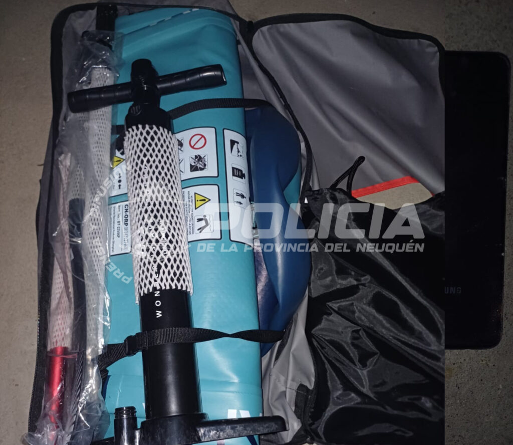 Además, se procedió al secuestro de un bolsón con accesorios de navegación y un bidón de combustible. Todo fue documentado y trasladado bajo cadena de custodia.