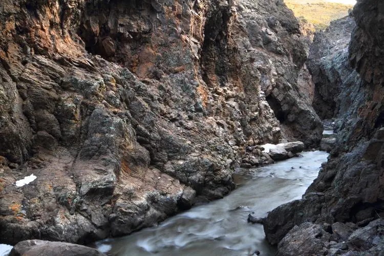 El viaje al Domuyo regalando más postales únicas, como el paso por el cajón del Atreuco, donde el río se abrió camino horadando las rocas durante miles de años.