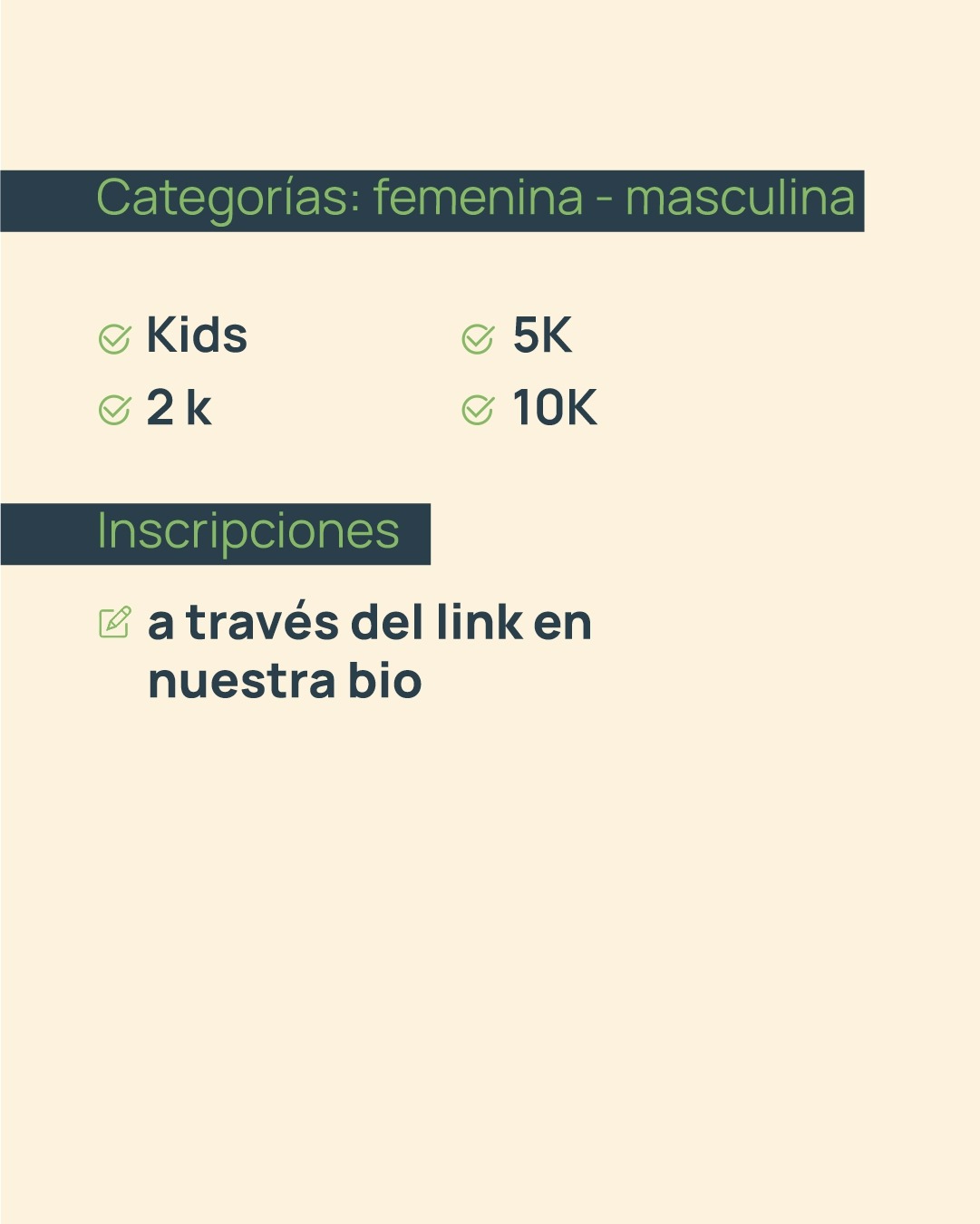 “Evolucionando” es una iniciativa libre y gratuita pensada para disfrutar en familia. Ofrece categorías adaptadas a todas las edades y niveles, fomentando así la participación de toda la comunidad sin distinción.