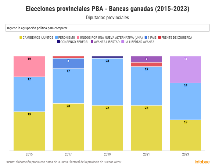 Cambiemos/Juntos fue la fuerza que ganó la mayor cantidad de diputados provinciales en las elecciones de 2015 (19 bancas), 2017 (23 escaños) y 2021 (22 lugares en la Cámara baja).