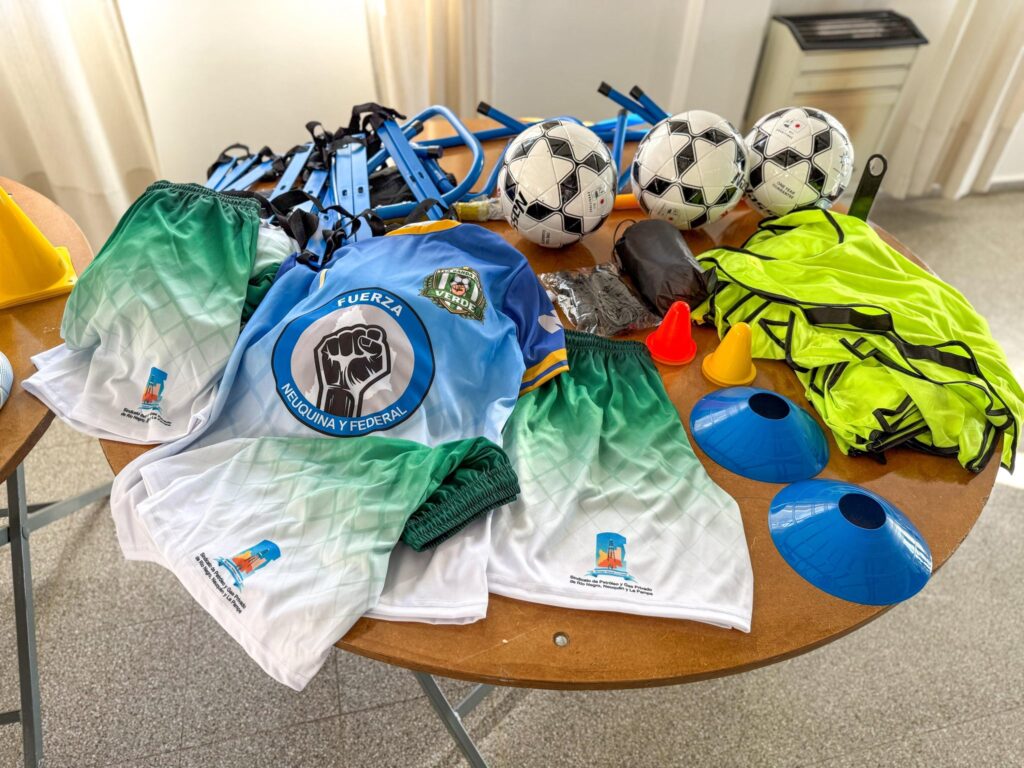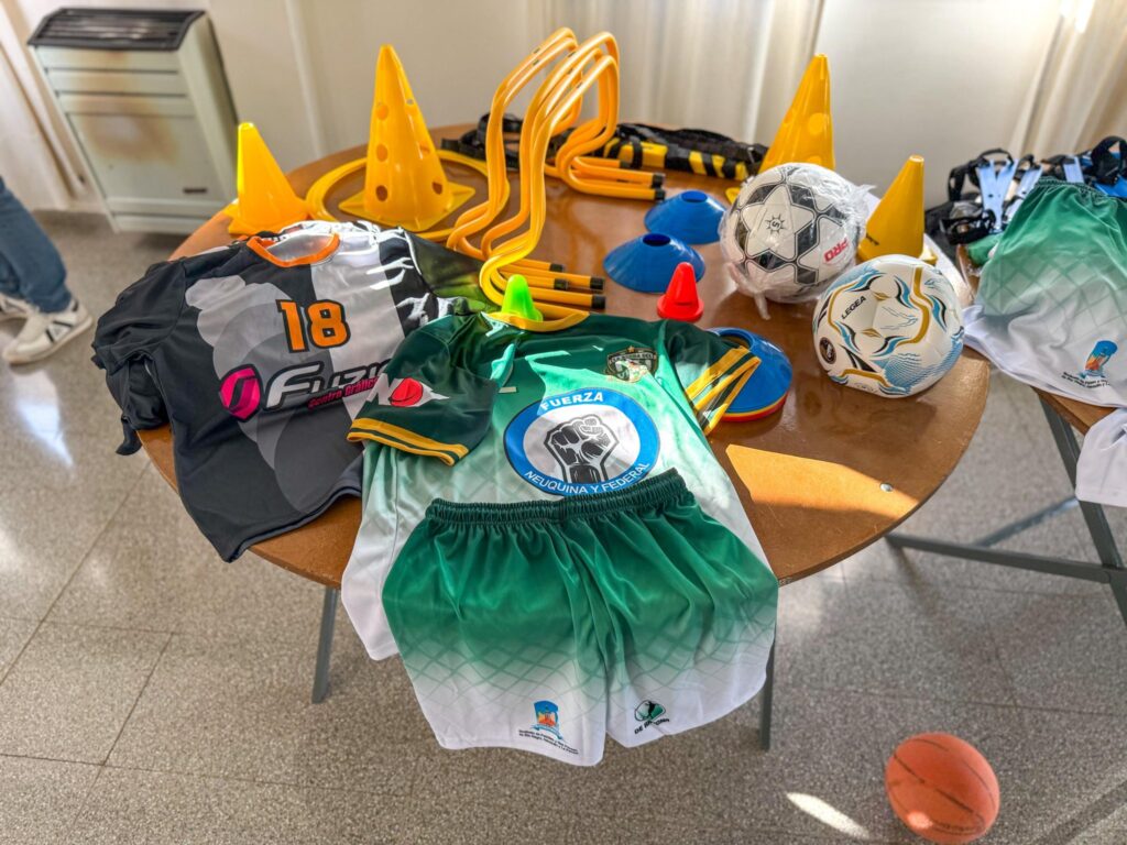 En el marco de la jornada, se entregaron elementos deportivos y camisetas al Club Pehuenches, en colaboración con los integrantes de Petroleros Solidarios Sangre Negra. La iniciativa apunta a fortalecer las instituciones locales y acompañar a los jóvenes en su desarrollo.