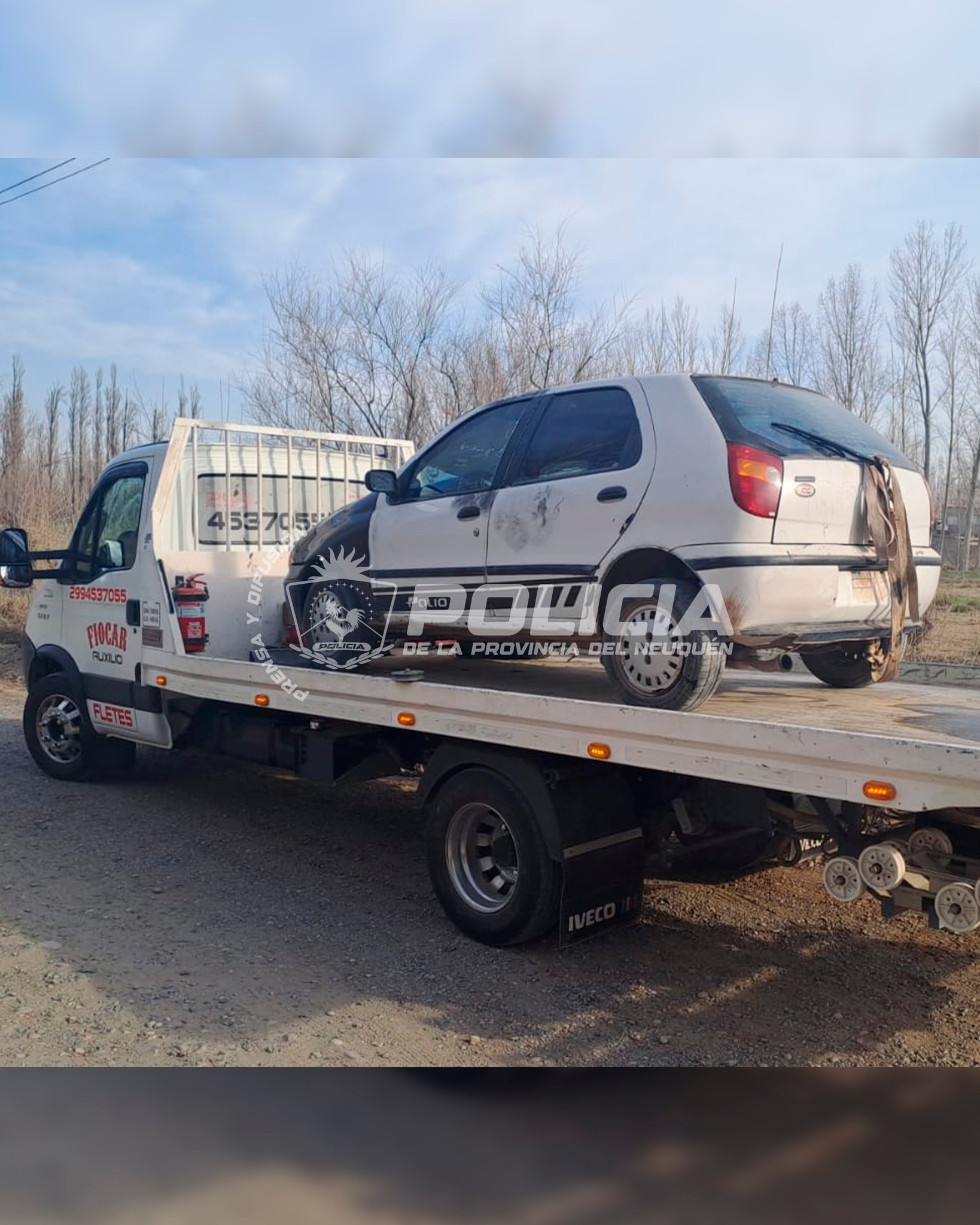 El Fiat Palio sin dominio colocado fue secuestrado y trasladado por grúa municipal hasta la unidad policial.