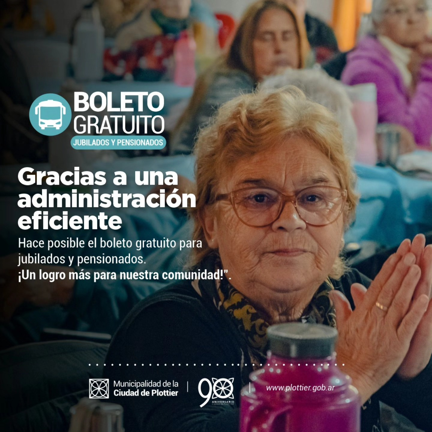 Así lo confirmó el propio intendente de Plottier, Luis Bertolini quien anunció que a partir del miércoles que viene todos los jubilados y pensionados que cobren la jubilación mínima podrán viajar gratis en el transporte público de la ciudad.