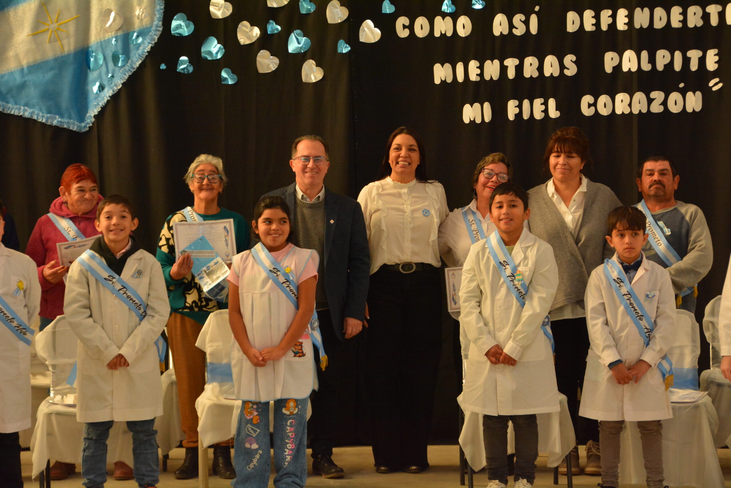 Este hecho se concretó en el marco del trabajo conjunto se está trabajando desde la Dirección de Desarrollo Social con escuelas primarias de la localidad, entre los distintos temas emergentes se abordó y trabajo sobre las insignias patrias.
