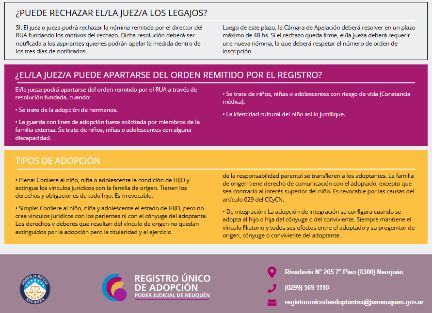Para conocer requisitos, condiciones y más detalles sobre el proceso, se puede acceder a la información completa en la web oficial del organismo: https://rua.jusneuquen.gov.ar/
