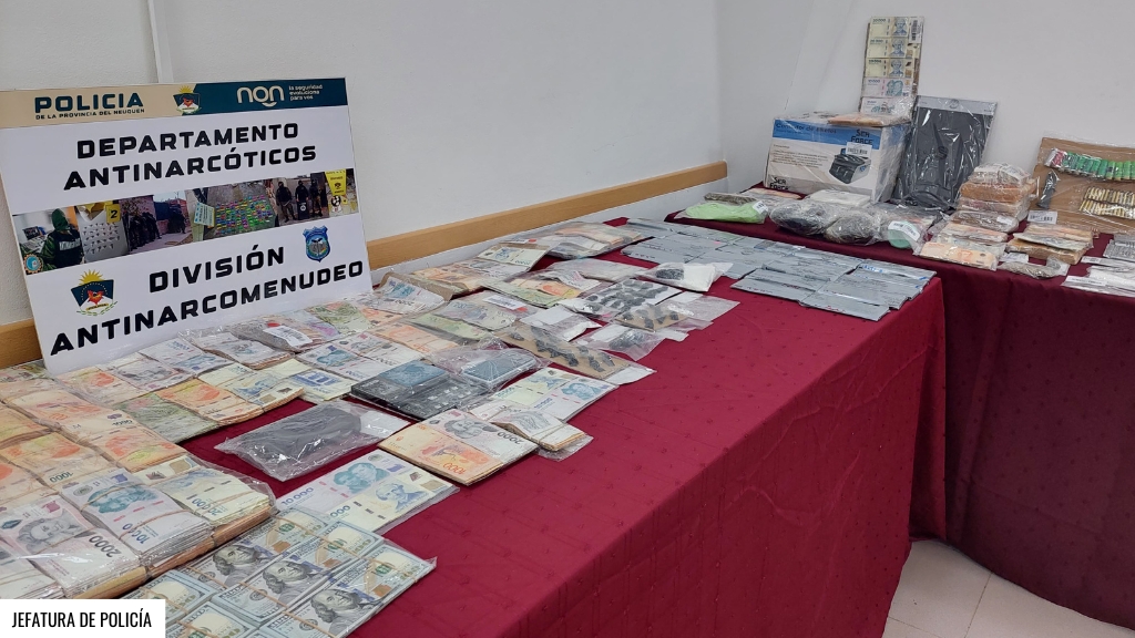 Por su parte Néstor Peralta detalló el operativo llevado a cabo la semana pasada en el marco de cuatro investigaciones en curso, en donde participaron cerca de 150 efectivos que realizaron allanamientos simultáneos en distintas localidades: Piedras del Águila, San Patricio del Chañar, Centenario, Rincón de los Sauces y Neuquén capital. Durante las diligencias se secuestraron más de un kilo de cocaína fraccionada, medio kilo de cogollos de cannabis, nueve vehículos y una suma superior a los 32 millones de pesos y 18.200 dólares. Actualmente, 12 personas se encuentran con prisión preventiva vinculadas a estas causas.