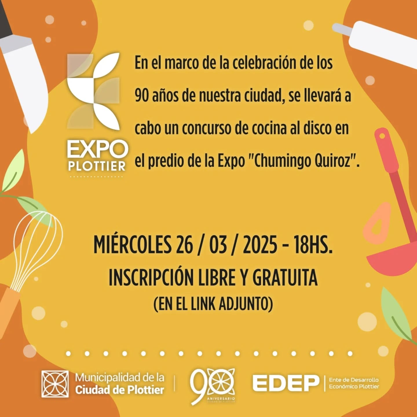 En el marco del 90° Aniversario de nuestra ciudad, te invitamos a un increíble concurso de cocina al disco con el Chef Cristian Alfaro.