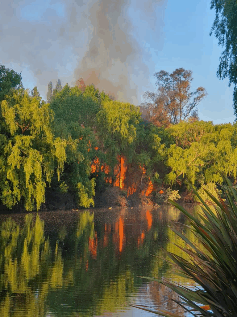Este domingo 19 de octubre, a las 19:20 horas se recibió un aviso por un incendio forestal en las inmediaciones de la Laguna Helena de en la ciudad de Plottier.