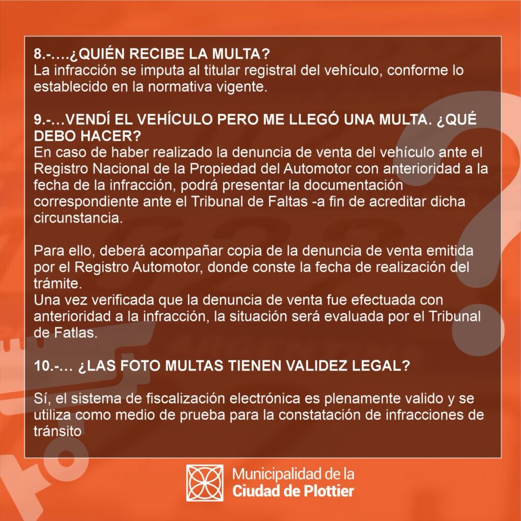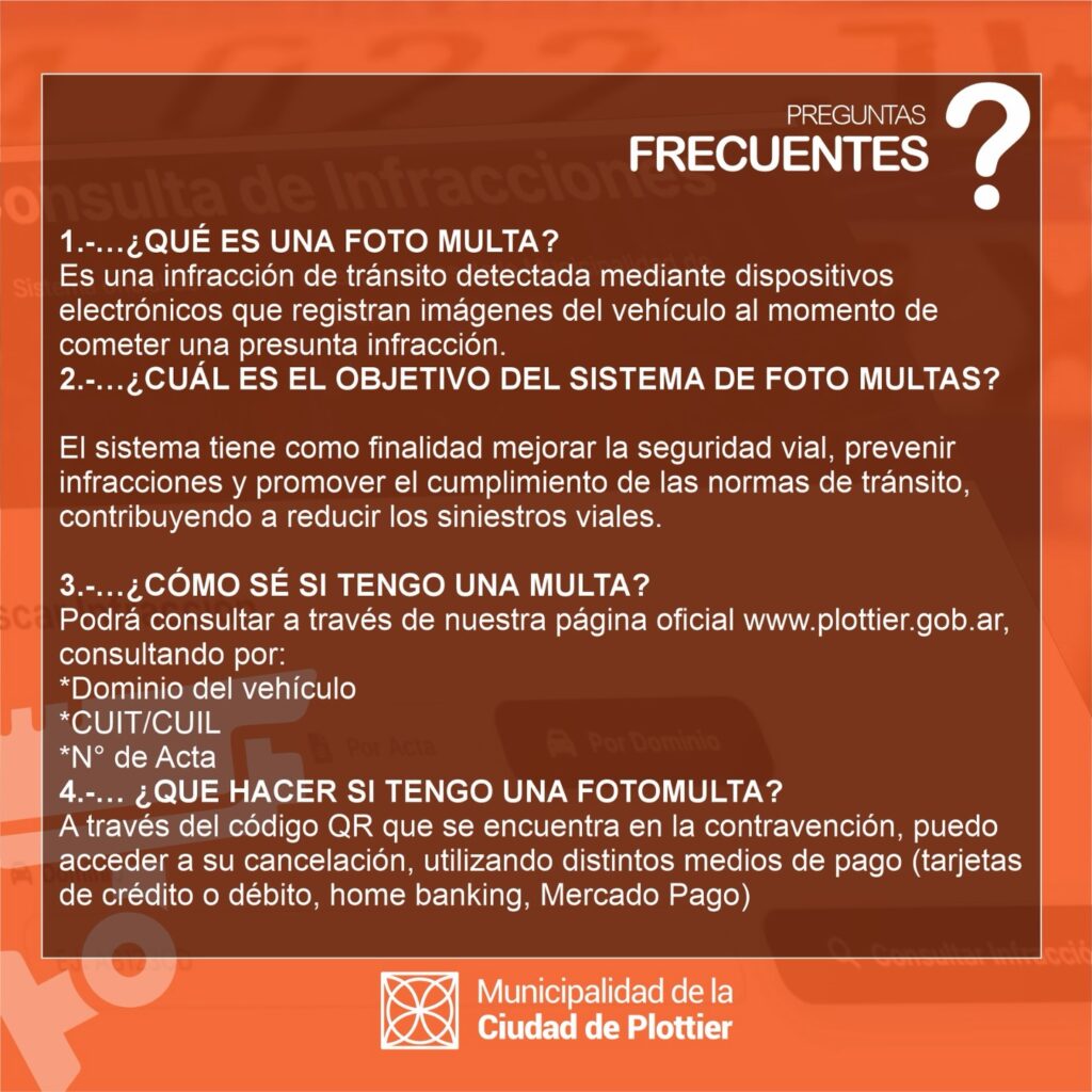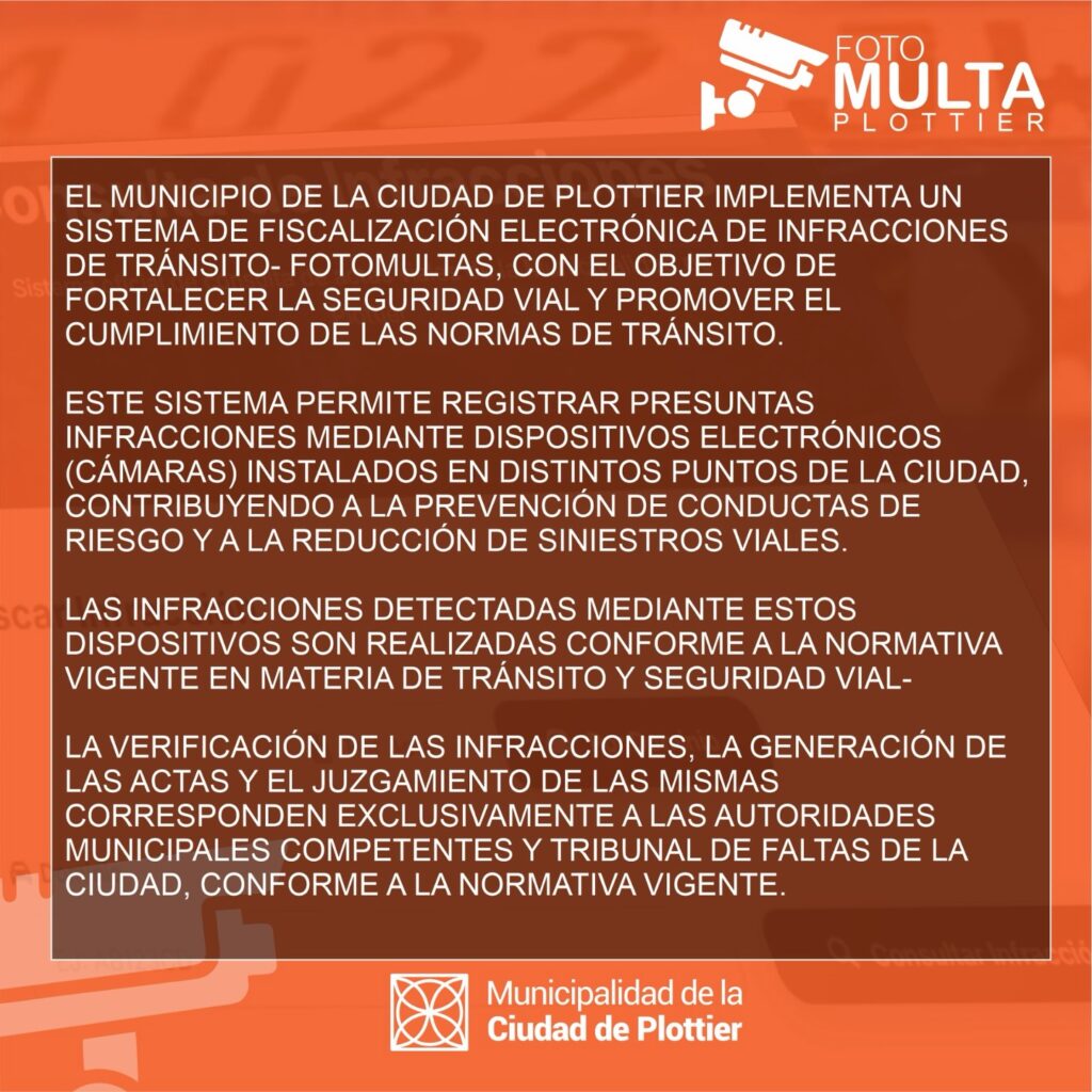 La Municipalidad de Plottier puso en marcha el Sistema de Fiscalización Electrónica de Infracciones de Tránsito, conocido como Fotomultas, con el objetivo de fortalecer la seguridad vial y promover el cumplimiento de las normas de tránsito en la ciudad.