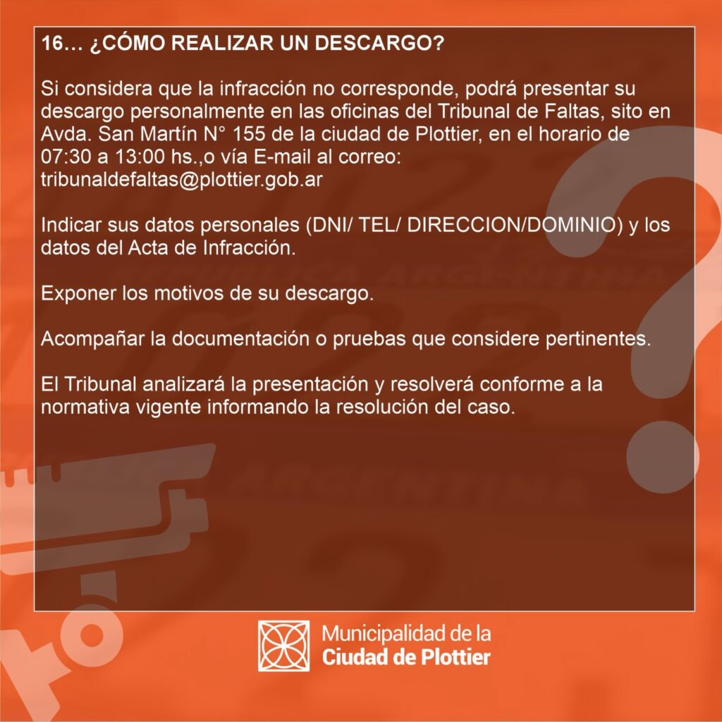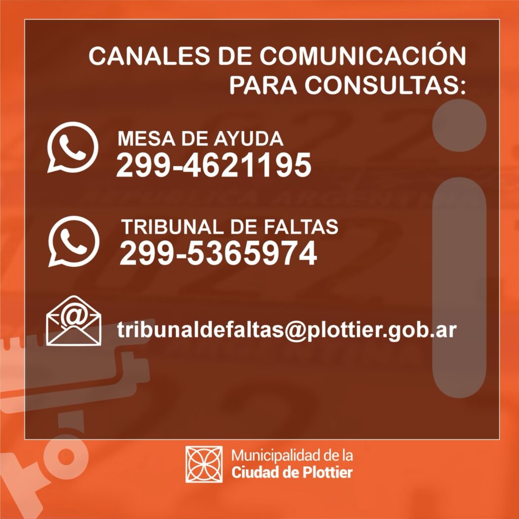 - Correo electrónico: tribunaldefaltas@plottier.gob.ar