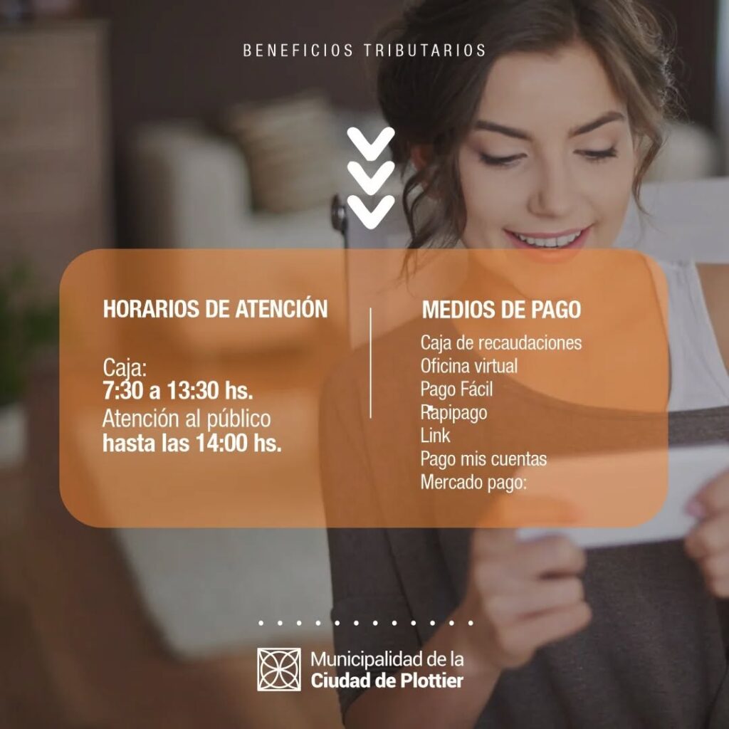 La Municipalidad de Plottier informa que comienzo el pago semestral de tasas municipales, incluyendo retributivo, patente de rodados y licencias comerciales.