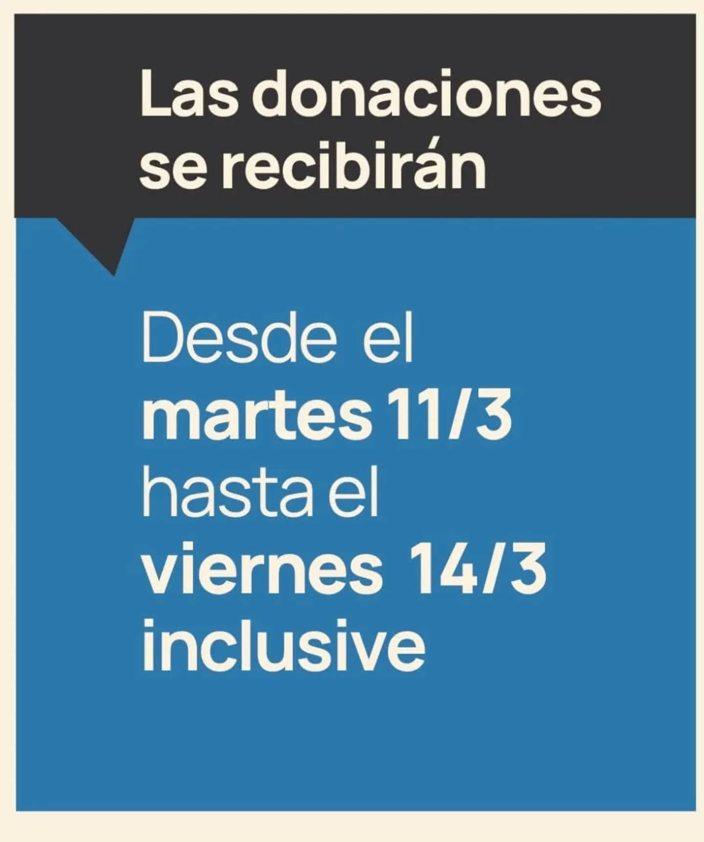 Recibimos donaciones desde el martes 11/3 hasta el viernes 14/3.