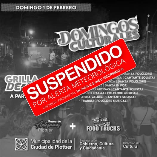 En el marco del Decreto Provincial DI-2026-2-E-NEU-SECR#MSEG, se informa que durante el fin de semana quedan suspendidas las actividades al aire libre en la ciudad de Plottier.