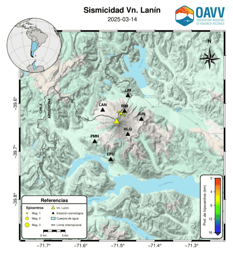 «En 2021, ampliamos la red con 9 estaciones -2 del lado chileno y 7, del lado argentino– , con sismógrafos, cámaras que monitorean el volcán y cinco estaciones GPS y, hoy, tenemos un muy buen nivel de precisión, por lo cual se detectaron estos eventos a unos 10 kilómetros de profundidad«, apuntó Sebastián García a Diario Río Negro.