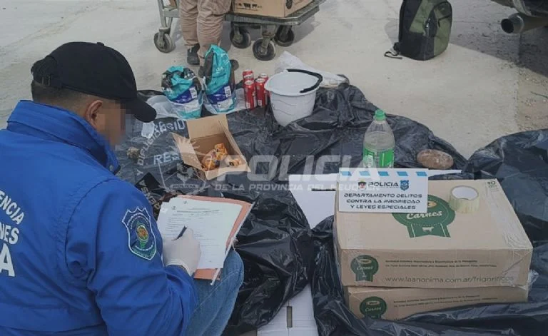 Una vez que detectan que dos personas que iban a bordo de la pick-up terminaron de trasladar elementos, intervienen y frenan el vehículo. En su interior, un conductor y una mujer de edades avanzadas se mostraron preocupados. A simple vista, divisaron que la caja estaba cargada con elementos ocultos. A posterior, los ocupantes acceden voluntariamente y exhiben los productos, contabilizando un total de $2.532.725,58, en su gran mayoría en carne vacuna y lácteos.
