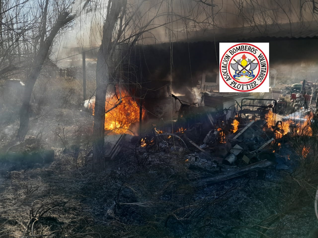 Un depósito dentro del predio de una vivienda en Plottier se vio envuelto en llamas este sábado por la mañana. El fuego causó importantes daños materiales y estructurales, pero afortunadamente no hubo heridos y los bomberos lograron controlar y extinguir el incendio.